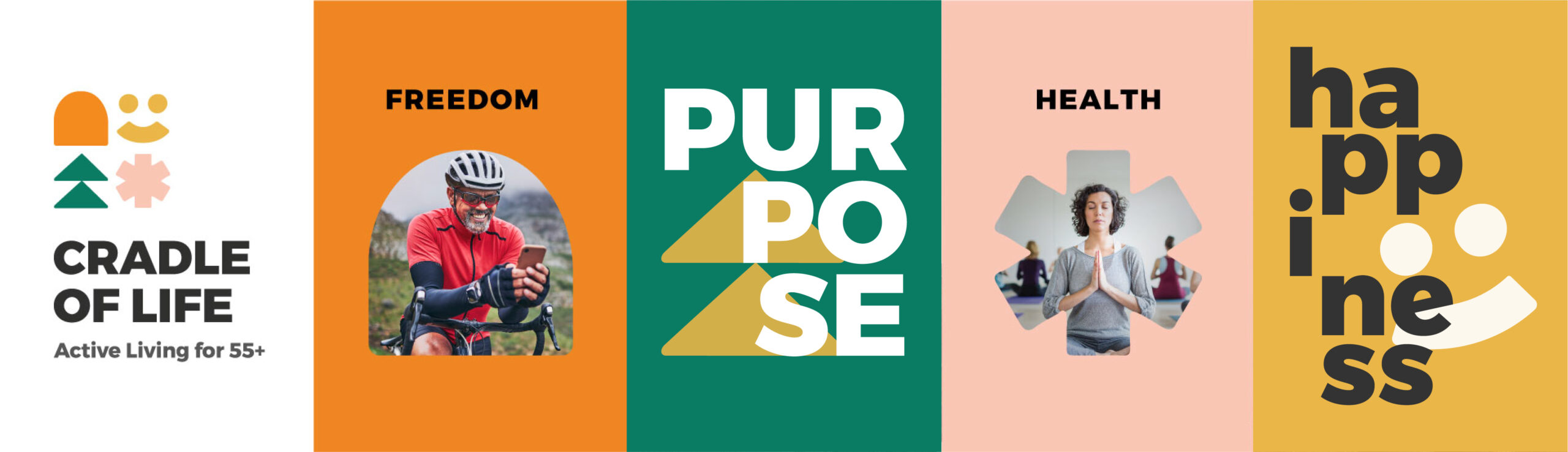 In a society where senior living is synonymous with old-age homes and a slower pace of life, Cradle of Lifesought to redefine what life after 55 looks like. Our goal was to challenge these stereotypes and build a brand that celebrates energy, independence, and the joy of living actively.