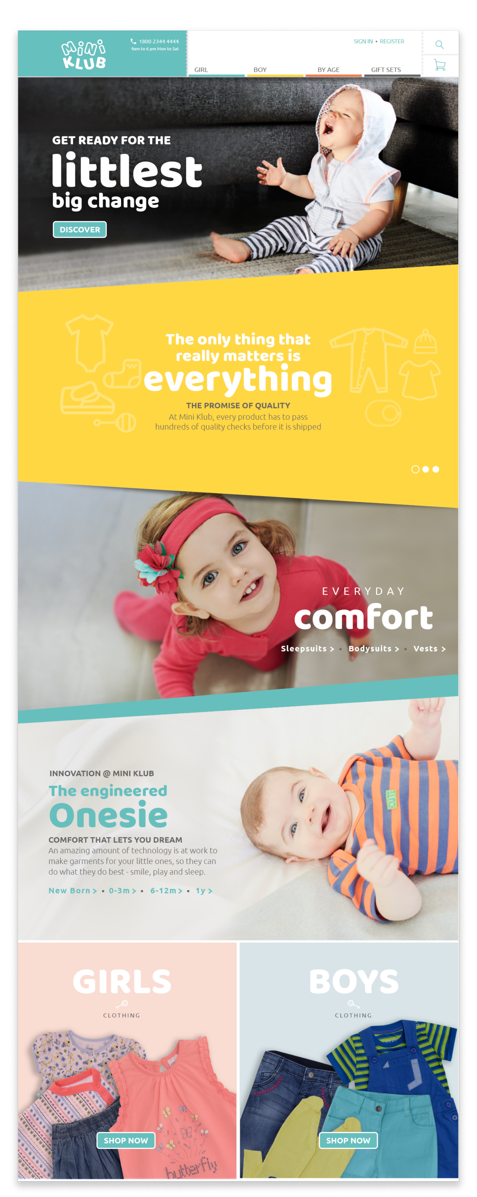 We tweaked their logo and created a playful language for the brand with a great sense of styling and imagery to establish them as a credible large scale group. We created an all new website and retail experience. Miniklub is now rapidly expanding their reach through their unique offerings and technologically advanced fabric and manufacturing techniques.