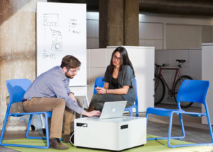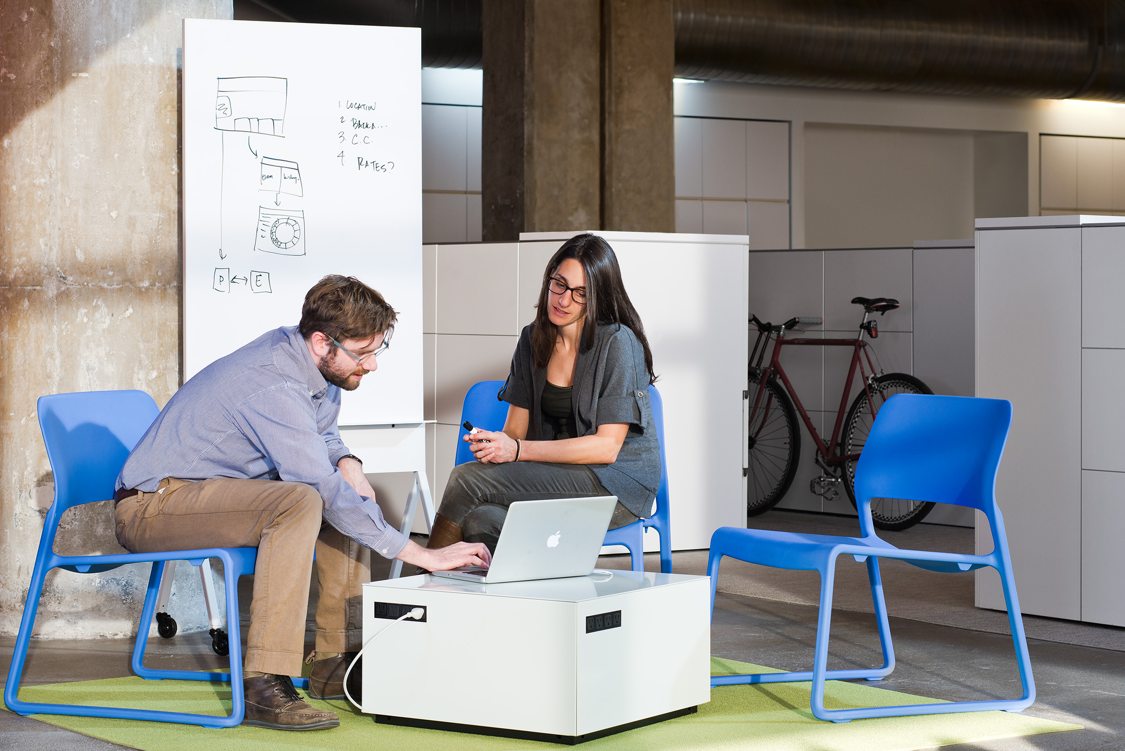 Knoll’s Powercube supports casual collaborations anywhere in the office. It has a simple design that fits in with any aesthetic and can be paired with a wide range of seating.