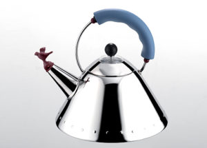 The Graves Kettle, designed by Michael Graves for Alessi. The little bird at the spout whistles when the contents boil.