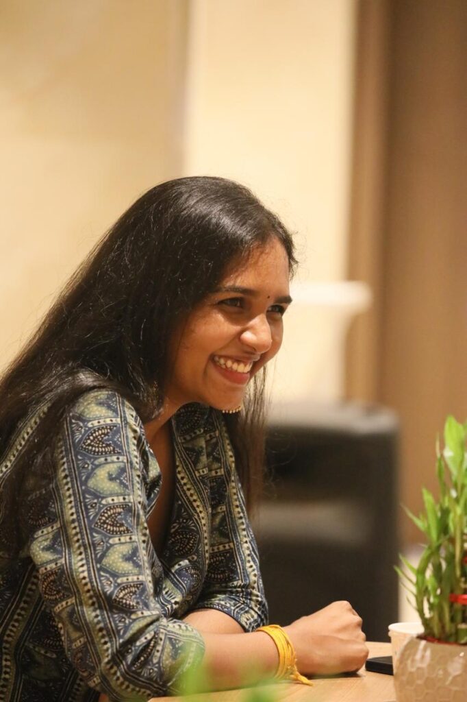 Outside of design, she finds inspiration in singing Carnatic music, dancing, and writing poetry, enriching her creative process. Her love for small joys and the wonder of life reflects her belief in living fully and creatively.