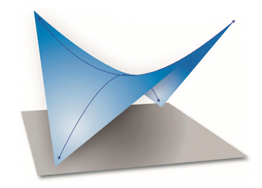 This kind of surface demonstrates the fundamental rule for stability; a fabric structure under tension must curve equally in opposite directions. This gives the structure its three dimensional stability.